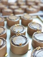 Indulgent mini cakes layered with rich chocolate sponge and smooth chocolate hazelnut cream, finished with a silky frosting and elegant chocolate drizzle. Topped with crunchy roasted hazelnuts, each bite delivers a perfect balance of creamy, nutty, and chocolatey goodness. These bite-sized treats are ideal for gifting, events, or adding a touch of luxury to any celebration.