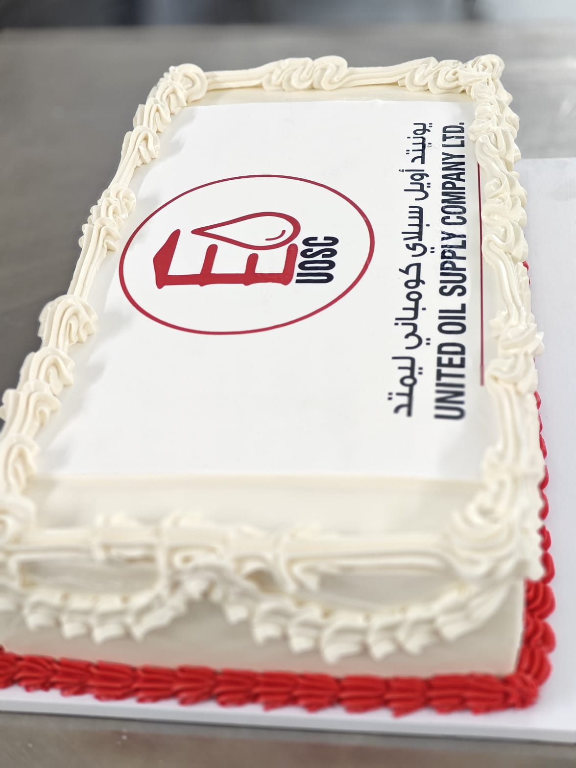A clean and professional cake designed with a smooth finish, elegant piping borders, and a customized edible logo print. Simple yet impactful, this cake is tailored to represent your brand with clarity and sophistication.