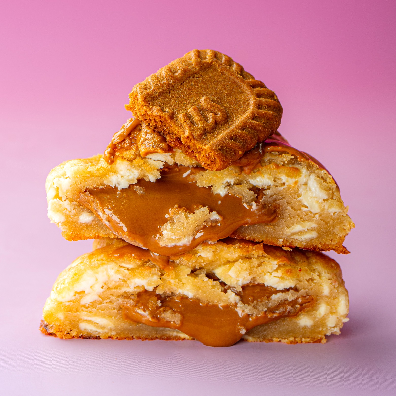 Fat cookie stuffed with creamy biscoff spread and topped with a biscoff biscuit