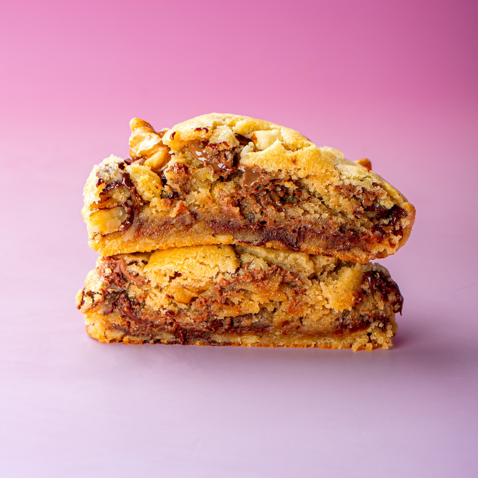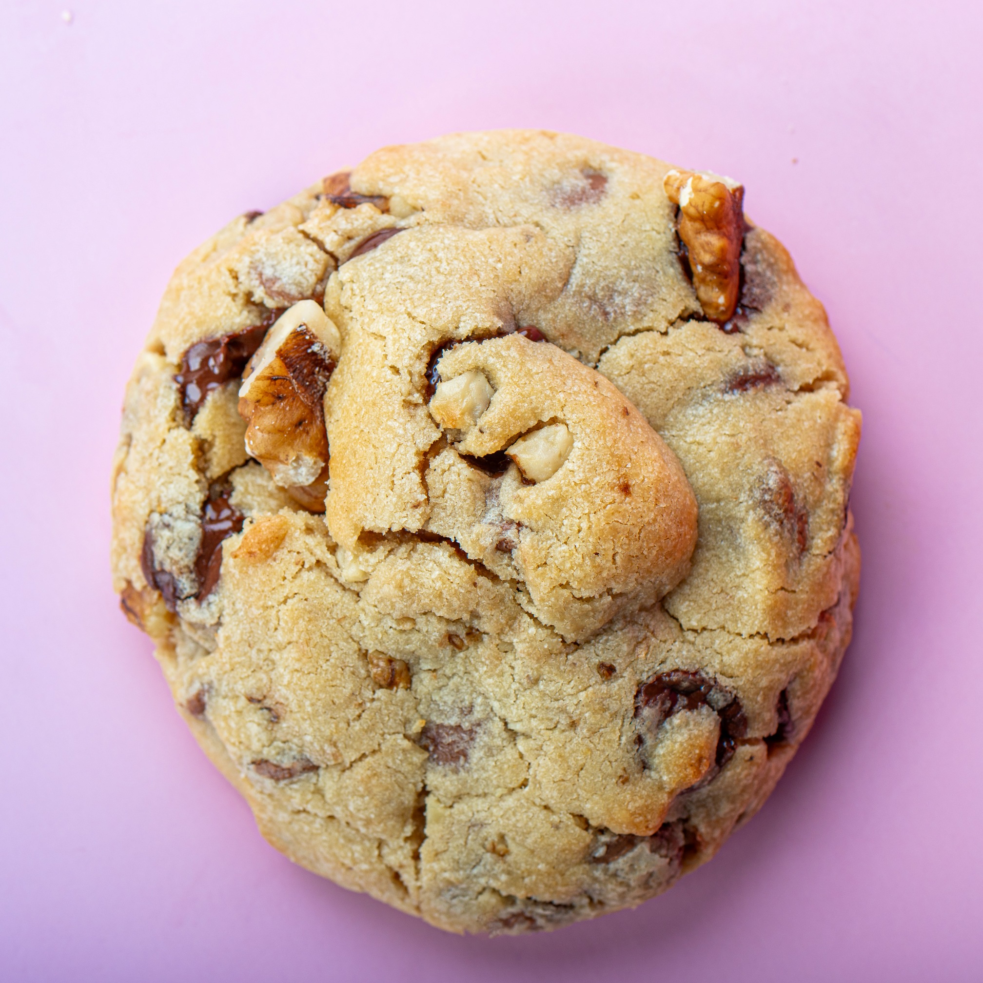 Thick Bakery-Style cookie with melty milk &dark chocolate in every bite, &crunchy walnuts.