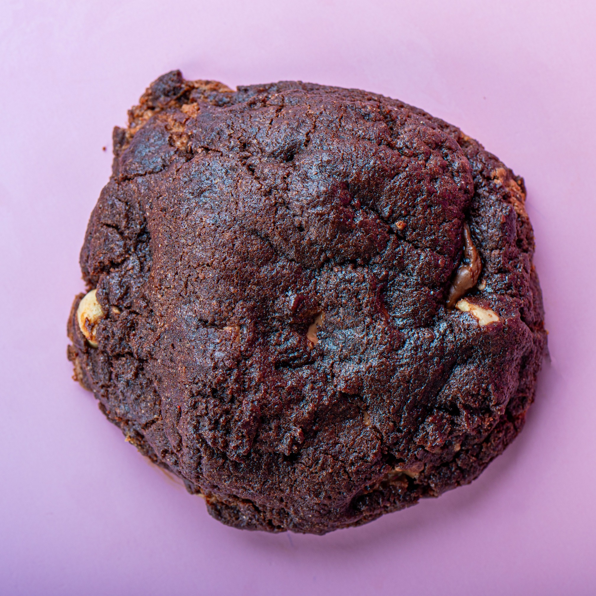 Fat chocolate cookie Stuffed with gooey nutella and crispy hazelnuts