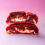 Fat & soft red velvet cookie stuffed with cheesecake and loaded with white chocolate