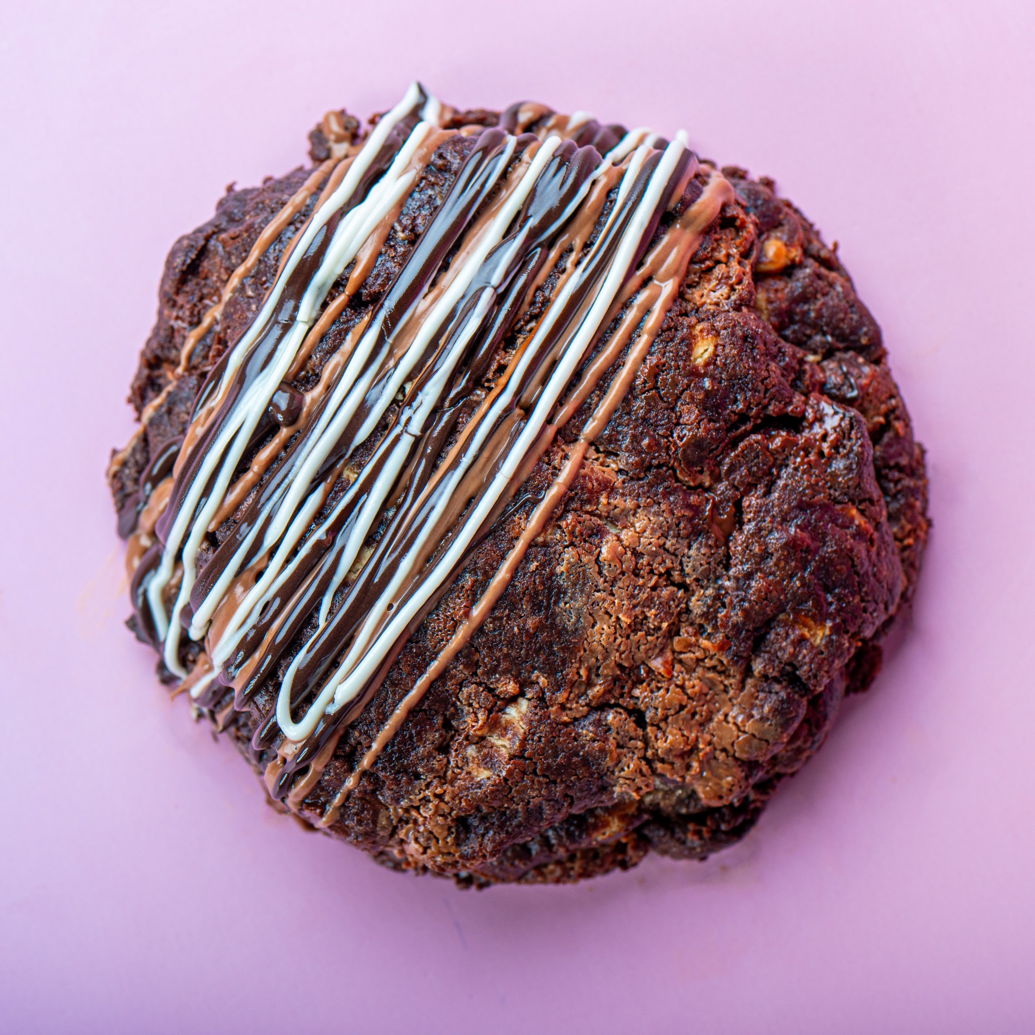 Thick cookie loaded with dark,milk,and white chocolate chunks